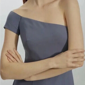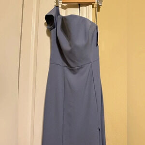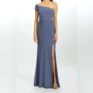 Amsale Yana Slate Crepe Long Formal Dress One Shoulder Side Zipper Slit Size 12