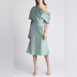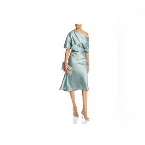 Amsale Draped One Shoulder Midi Dress