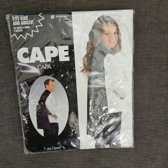 Amscan Costume Black Cape Adult / Kids Project Halloween Play 1-Pc NWT