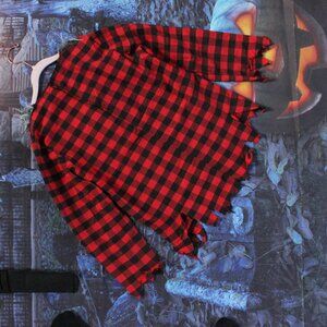 Step out of the fairytales and legends and into your Halloween or costume party with this Amscan Hungry Howler Boys' Costume. The set of furry paws, hood and a red and black plaid shirt transforms you from an ordinary kid to a fearful werewolf that can scare people into giving you more candy when trick-or-treating.