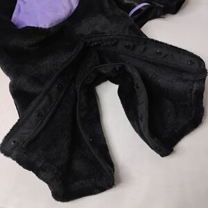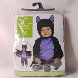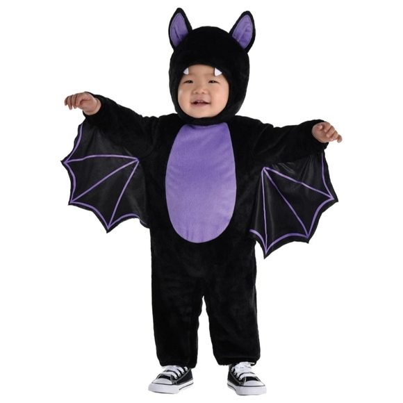 Everyone will go batty when they see your little one dressed in this adorable bat costume for Halloween! Included in the classic bat costume are the black and purple jumpsuit with attached wings and bat hood with ears. This costume is great for your themed events, parties, occasions, and other affairs. The jumpsuit features Hook & Loop back for convenient dressing and undressing, along with elastic at the wrists and ankles for a comfortable fit. Inseam snaps are incorporated into the jumpsuit design, providing easy access for diaper changes.