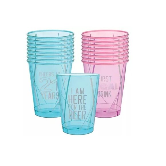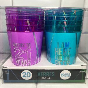 Selling an Amscan 20-Count Set of Iridescent Pink and Blue "Finally 21" Birthday Plastic Tumblers (10fl oz). New in Packaging!