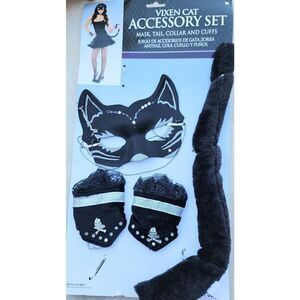 Amscan Vixen Cat Accessory Set Costume Black Masquerade Mask Tail Cuffs Novelty