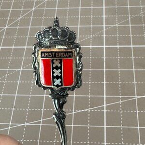 Amsterdam Souvenir Demitasse Spoon 800 Silver With Enamel Coat Of Arms Design