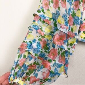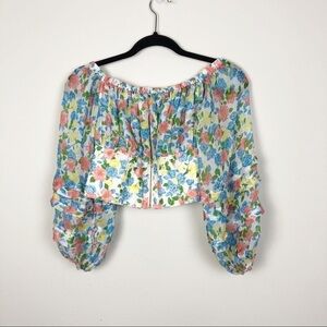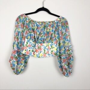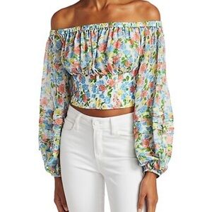 Amur Alora Silk Floral Off the Shoulder Floral Cropped Top Long Sleeve Casual