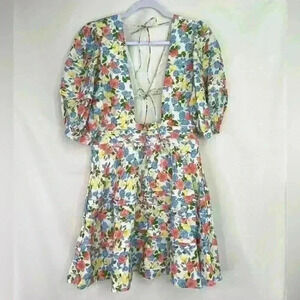 Amur Avian Puff Sleeve Floral Mini Dress in White Anemone Floral Size XL NWT