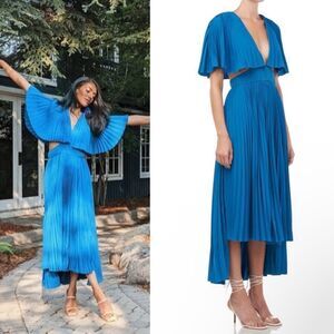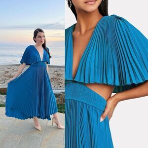 Amur Dara Pleated Cut-Out Midi Dress in Ocean Blue Size 10
