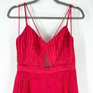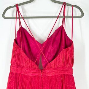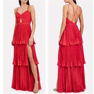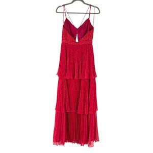Amur Dominique Tiered Pleated Lace Print Maxi Dress in Raspberry Rose