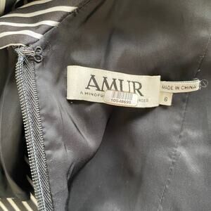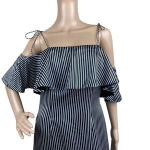 Amur Francesca Women Black White Satin Stripes Cold Shoulder Ruffle Dress Sz 6