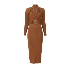 Amur Guadalupe Ribbed Knit Cutout Long Sleeve Fall Midi Dress Brown Size Medium