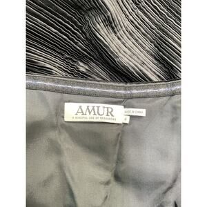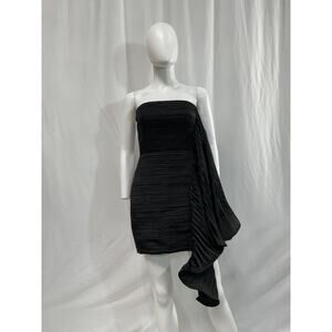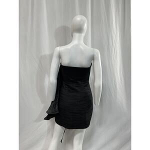 Amur 'Kayleigh' Black Dress Size 4: fully lined, hidden side zipper closure, boned bodice with non-slip silicone neckline strip, pintuck satin fabric, cascading ruffle accent fabric at side.