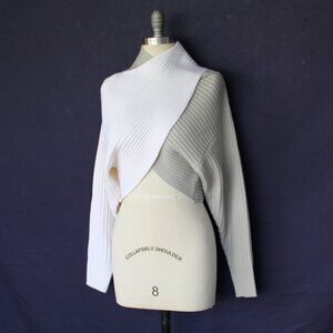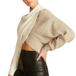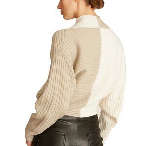 Amur Milena cropped rib knit sweater wrap Crossed Twist Wool color block $298 XS