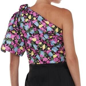 Amur One Shoulder Floral Print Crop Anastasia Flounce Top NWT XXS