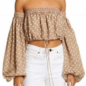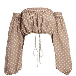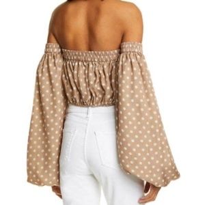 Amur Rosaline Silk Polka Dot Off-The-Shoulders Crop Top Blouse Beige Nat…