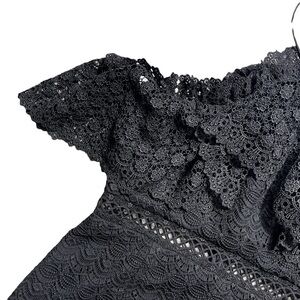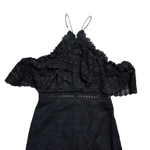 In excellent condition •Amur •Revolve •Valentina Dress •Midi Dress •Cold Shoulder •Lace •Bodice •Ruffles •Lined •Tiered Ruffle Hem •Date Night •Wedding Guest •Party •Cocktail