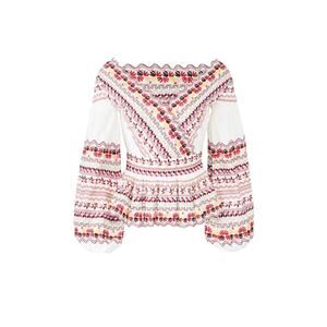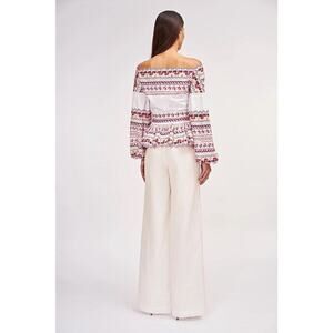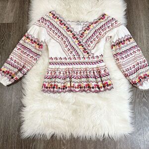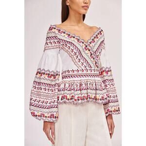 Amur Womens Alma Top Bishop Sleeves Embroidered Size Small Peplum Off Shoulder
