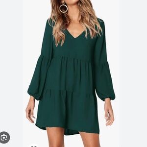 Amureto Tiered Size M Tunic Dress Green Long Sleeve V Neck - size small