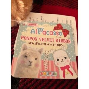 Amuse Brown Alpacasso Pom Pom Velvet Ribbon Alpaca Toreba Prize Plush 6.5" NWT