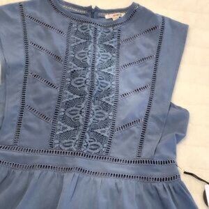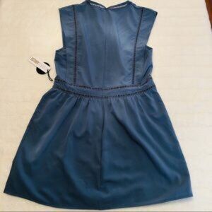 NWT After Hours lace front poly crepe dress in blue by AMUSE SOCIETY