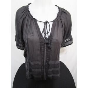 AMUSE SOCIETY BLACK BOHO LACE EMBROIDERED PEASANT BLOUSE WOMEN SZ L