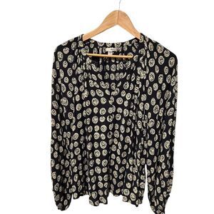 Amuse Society Black Tan Circle Design Abstract Top Blouse medium