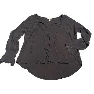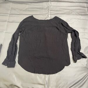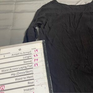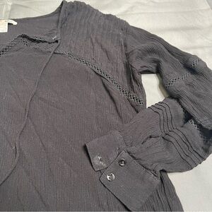 Chic black blouse with textured design. Features long sleeves and button details. Ideal for versatile styling.