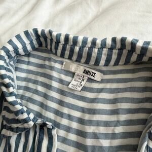 Amuse Society Blue White Striped Button Up Tunic Shirt Women’s Size S
