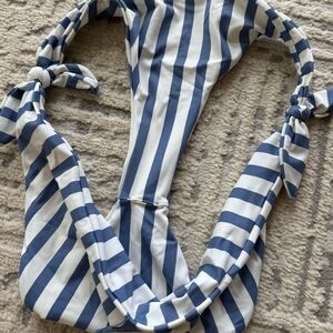 Amuse Society Coline Striped Blue and White Toe Sides Bikini Bottom