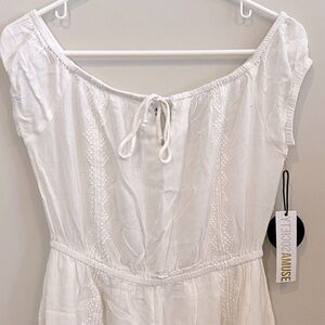 has elastic band in the waist, upper hem, and sleeves that provide good stretch