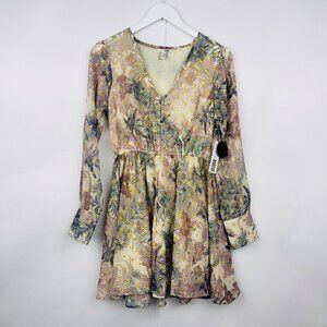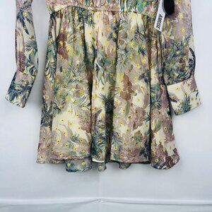 Amuse Society Eva Luna Floral Chiffon Long-Sleeve Mini Dress Size S