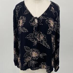 Amuse Society Floral Print Blouse Top Keyhole Tie Neckline Black Light Pink S