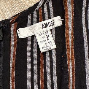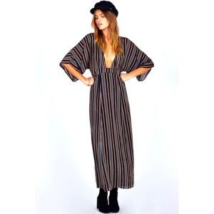 Amuse Society Forever And A Day Striped V-Neck Maxi Dress, Size XS in Black, White, Light Brown Stripes. Beautifully daring, this cleavage-baring dress will keep you looking HOT and feeling cool this summer. Delicate shirring and a banded waist make for a figure-flattering trendy, boho-style maxi dress made from light and flowy gauze. Hidden back-zip closure. Plunging v-neck. Three-quarter boho sleeves. The Forever and a Day Dress is inspired by a kimono.