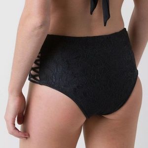 Amuse Society High Waist Lace Black Lace Up Side Bikini Bottom