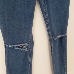 Amuse Society Iconic Medium Wash Distressed Skinny Jeans 28 Knee Slit Rip