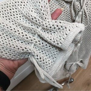 Amuse Society LS knit crochet tan cotton blend sweater drawstring neck n waist S