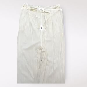 Amuse Society Living Easy Pleated Wide Leg High Waisted Pant Coastal minimalist White, smocked elastic waistband in back, ties in front, lined Size US M