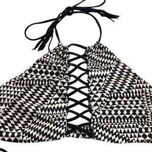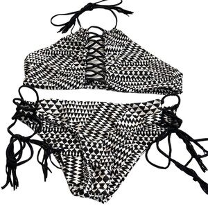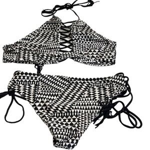 Amuse Society Marre 2 pc Lace Up Top Bikini Set Black White SZ M