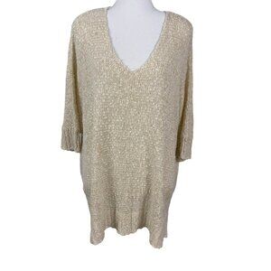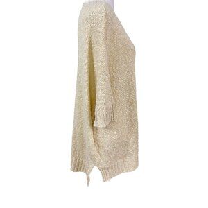 Amuse Society Oversize Boxy Short Sleeve Cream Sweater With Gold Thread (S)