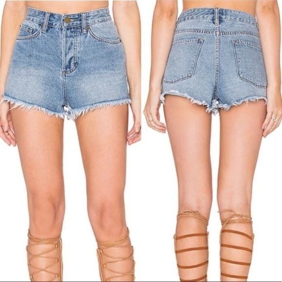 Amuse Society Revolve High Waisted Rigid Button Fly Raw Hem Jean Shorts