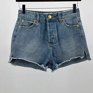 Amuse Society Shoreline High Rise Cut Off Denim Shorts - Size 25. Great pre-owned condition. Scratches on buttons. 100% cotton, button fly, 5 pockets, factory distressing, cut off with side splits. Approximate measurements: 13" waist, 11" rise, 2" inseam.