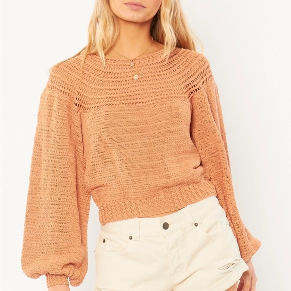 Amuse Society Stevie Crochet Clay Brown Open Knit Sweater Size XS