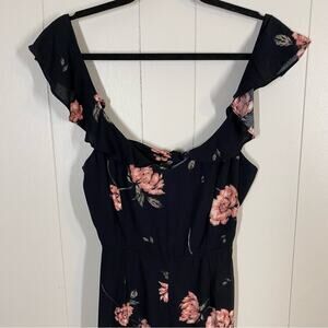 Amuse Society Sweet November Black Floral Print Tie Back Jumpsuit Size Small