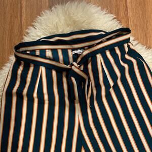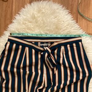 Wide leg pants trousers stripes polyester playful fun amuse society tie front business casual women's