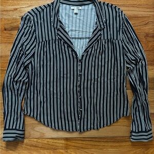 Amuse Society White and Black Striped Button Down Blouse