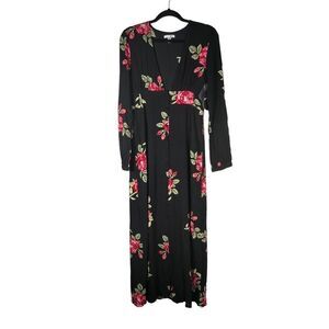 Amuse Society Women's All Buttoned Up Black Floral Maxi Dress Size Mediu…