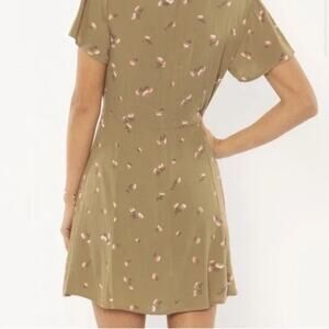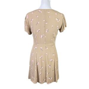 Amuse Society Yours to Keep Tan Light Brown Floral Crinkle Button Up Mini Dress