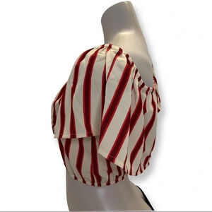 Amuse Society off the shoulder striped top. Crop off the shoulder top can be worn on or off the shoulder. Has elastic trim on shoulders and waist.