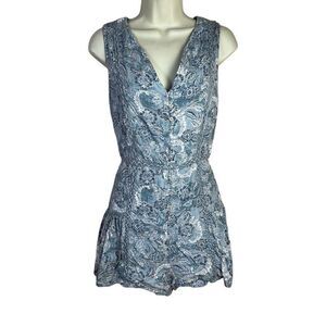 Amuse Society Floral Paisley and Lace Boho Periwinkle Romper Size L