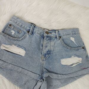 Amuse Society Revolve Crossroad Shorts Distressed Blue Jean Denim Cuffed 26.