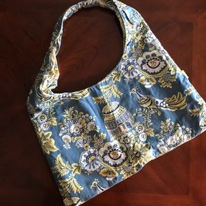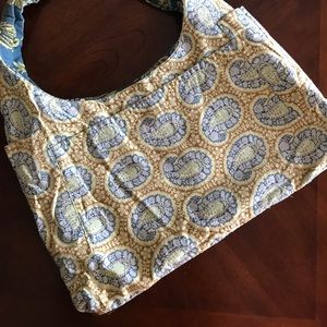 Adorable Amy Butler Sling Bag, reversible (both sides shown) lime green, teal, and brown